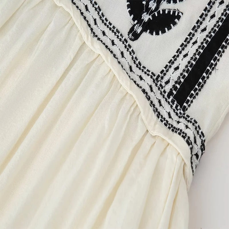 Vestido Corto de Vuelo con Bordado