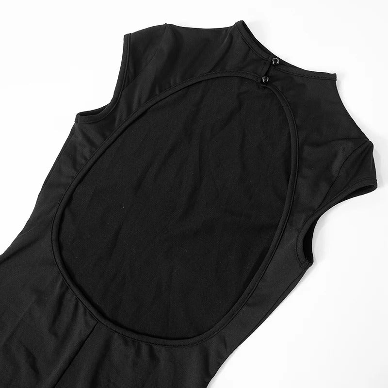 Vestido Fruncido de Cuello Alto Sin Mangas