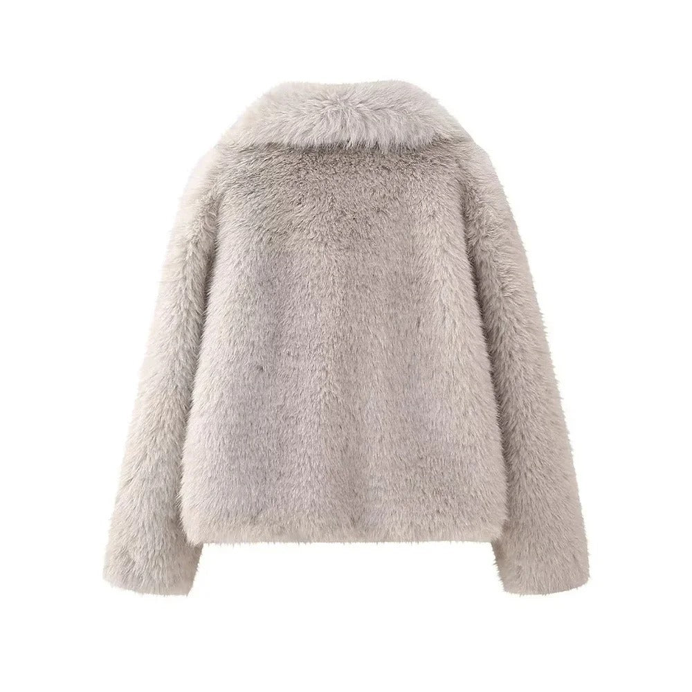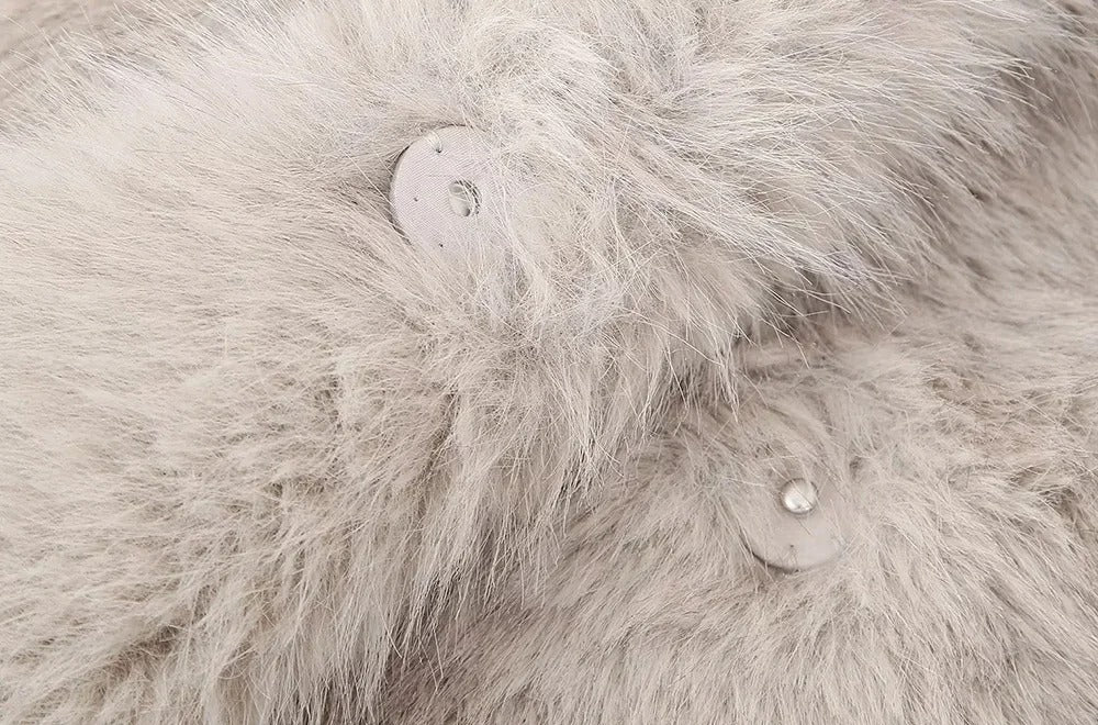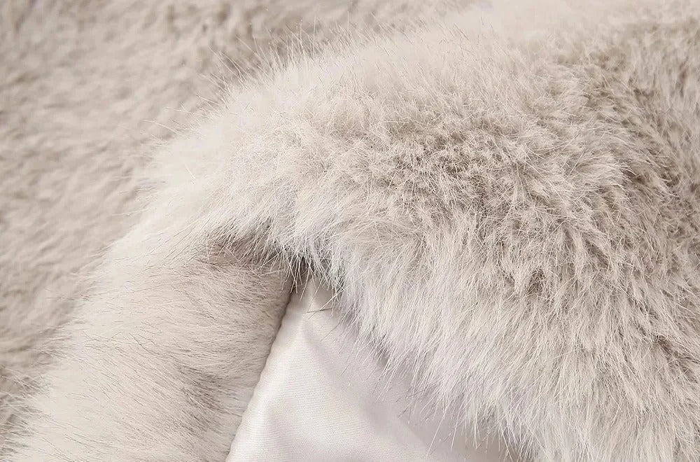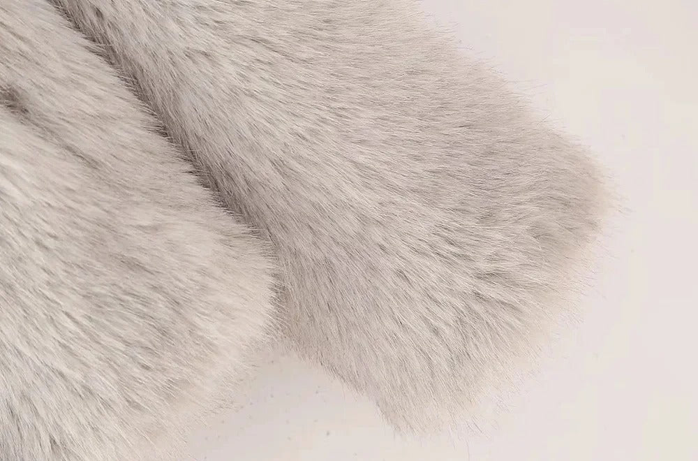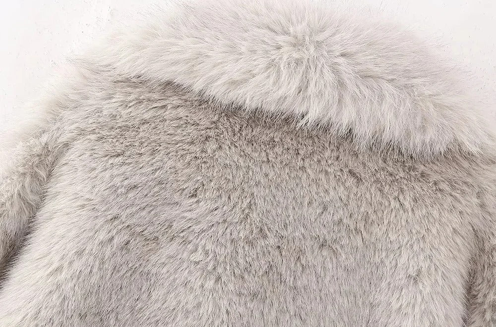Diseño de largo medio. Cuello con solapa. Manga larga. Cierre frontal oculto. Detalle de piel sintética en contraste. Acabado suave al tacto.