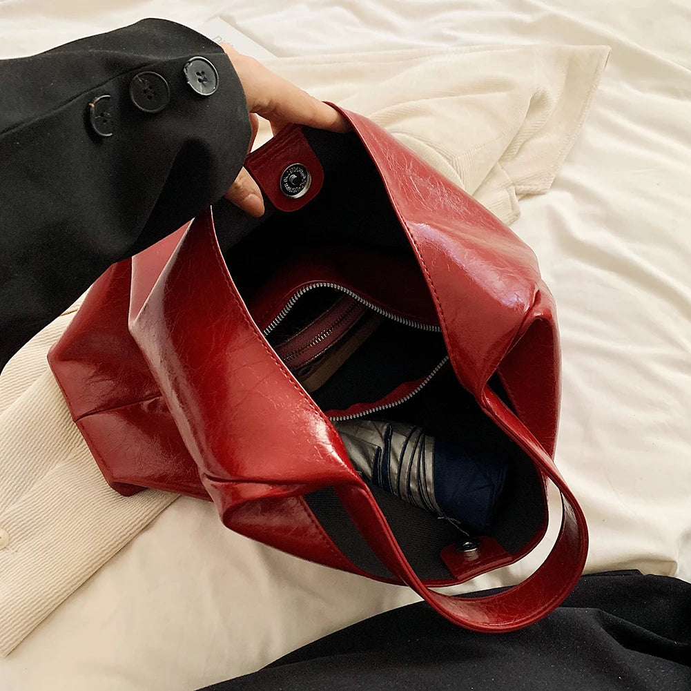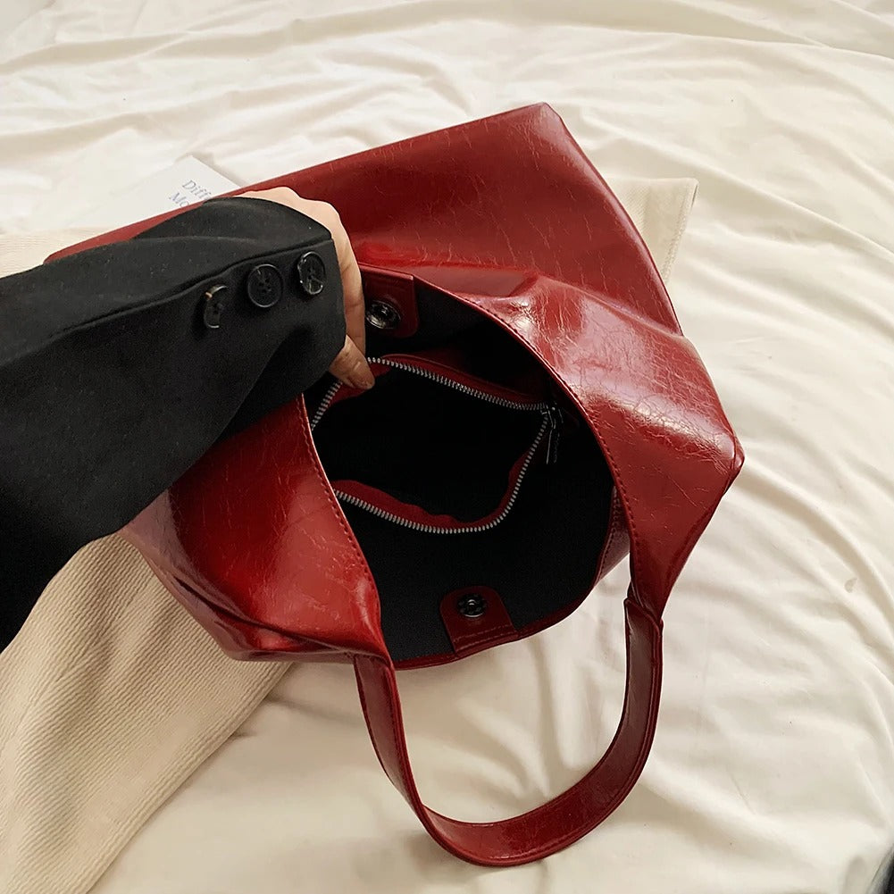 Tamaño grande. Asa superior ovalada. Sin cierre.
