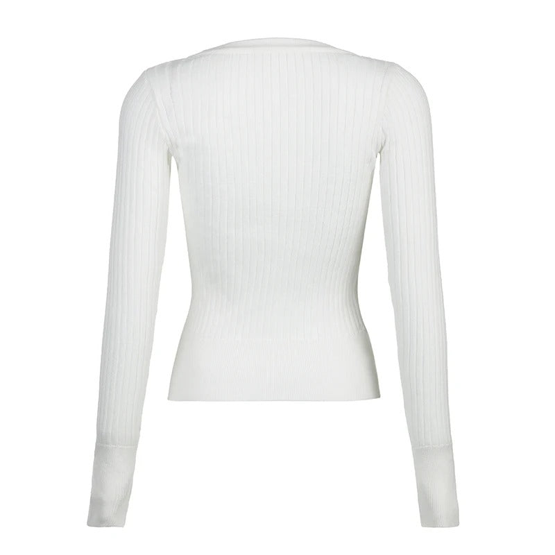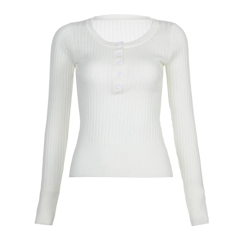 Diseño de largo medio y corte ajustado. Cuello redondo con detalles de botones en la parte frontal. Manga larga. Acabado acanalado.