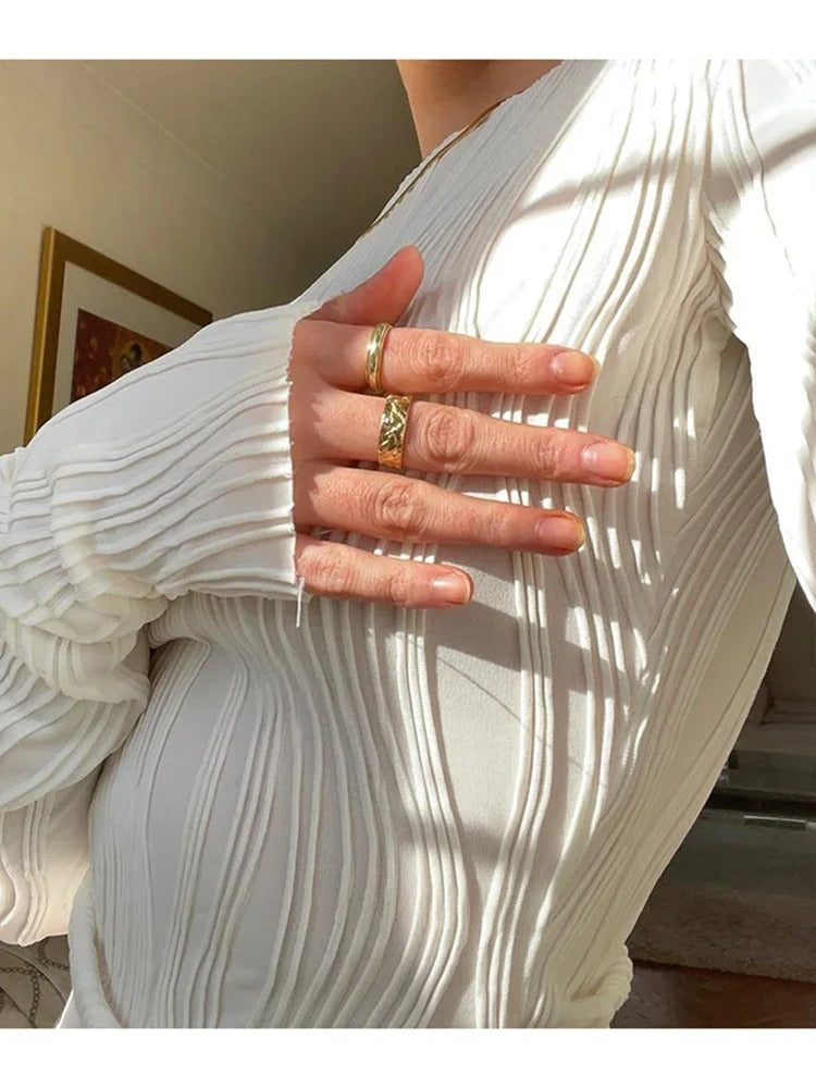 Diseño ajustado. Cuello alto recto. Detalle de fruncido curvo en la parte delantera y mangas. Manga larga y corte a la cintura.