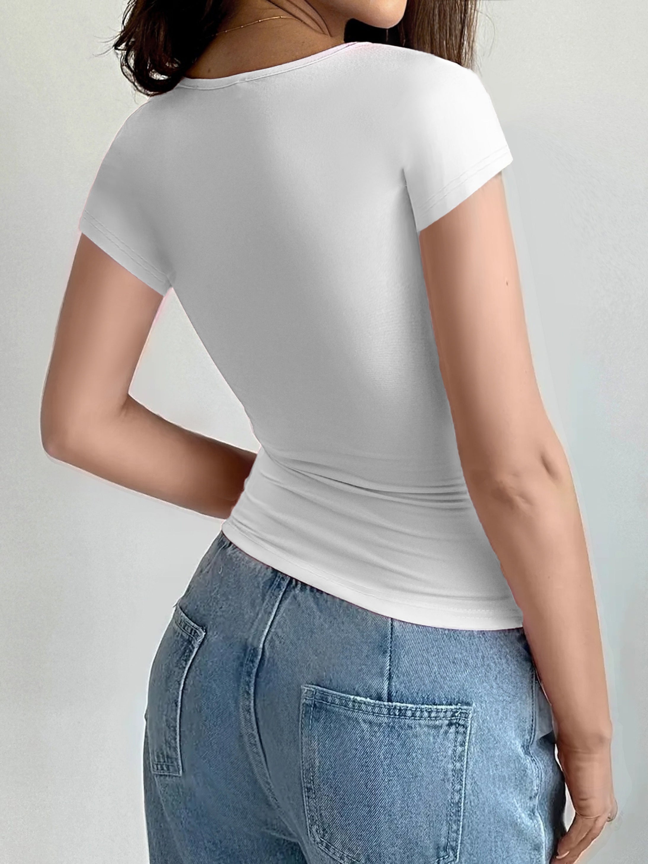 Camiseta de manga corta. Cuello redondo. Talle ceñido, ajustado al cuerpo.