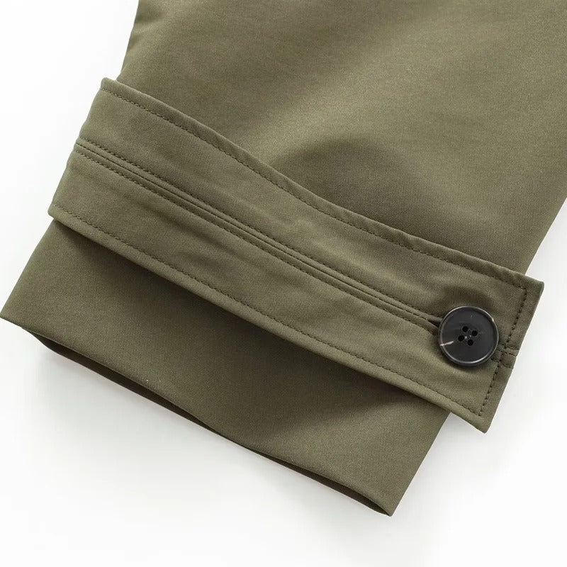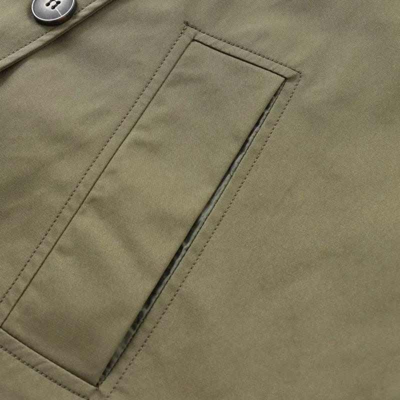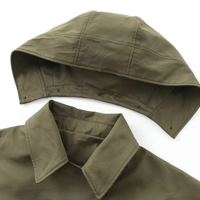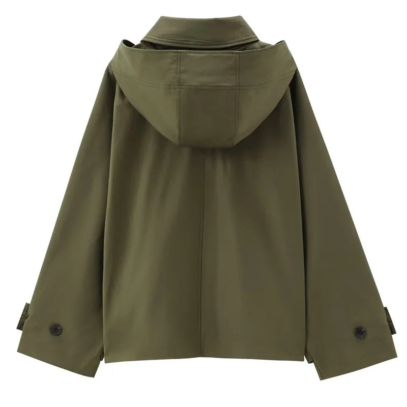 Chaqueta cortavientos. Cuello de solapa con capucha extraíble. Manga larga. Bolsillos laterales. Cierre de botones frontal.