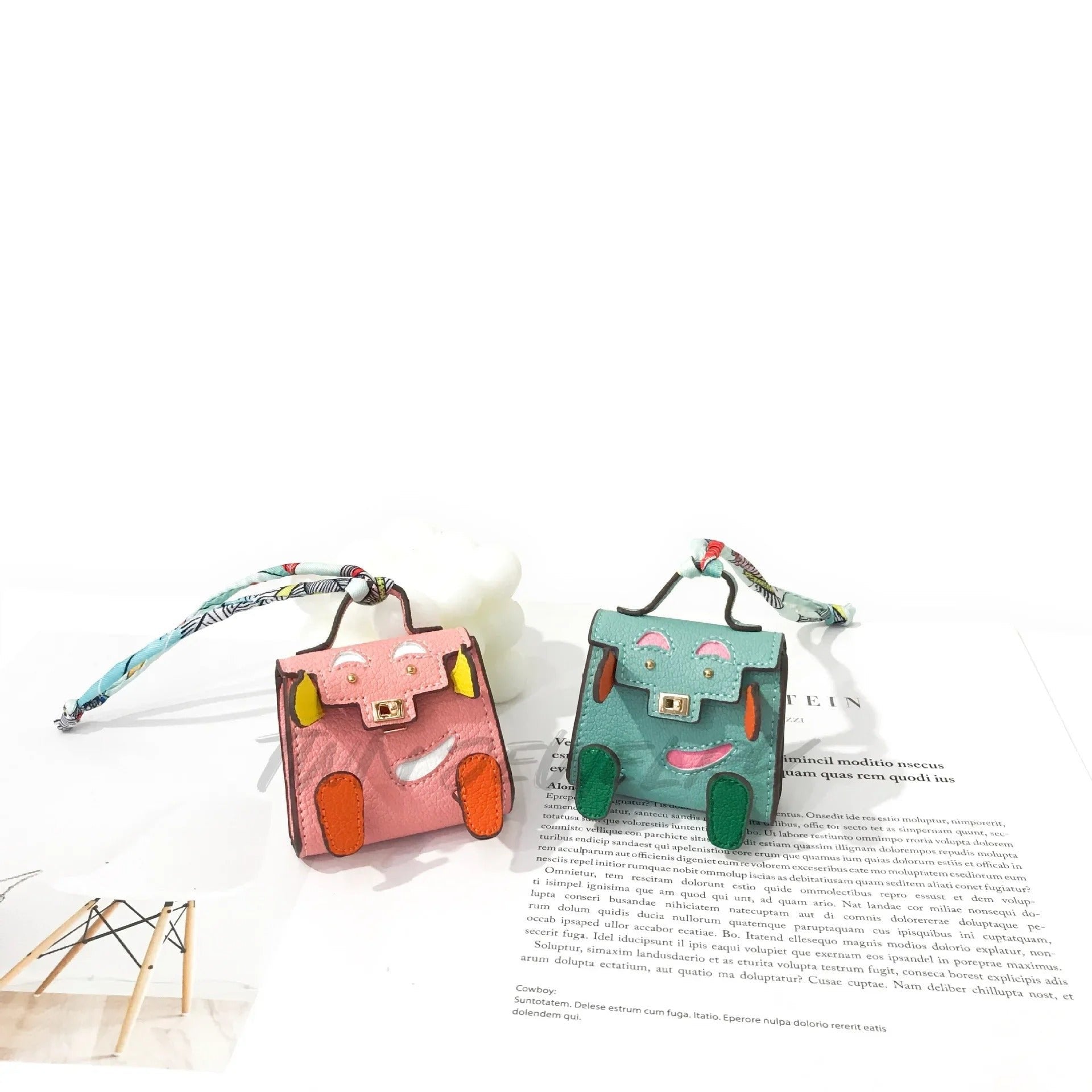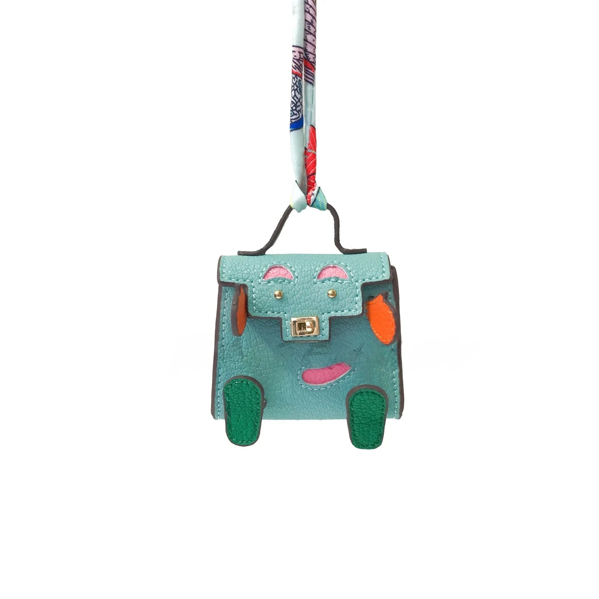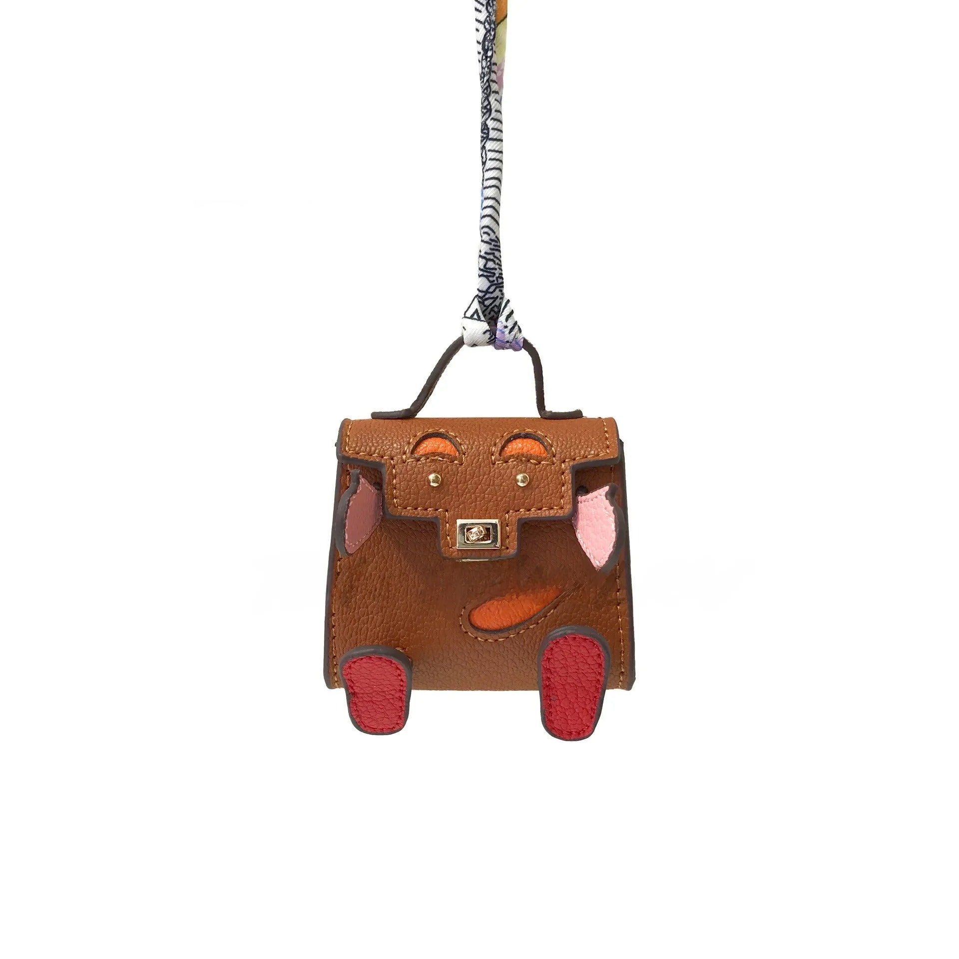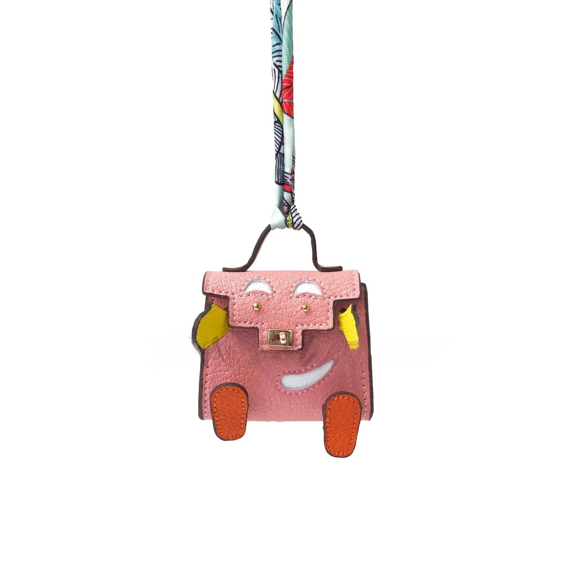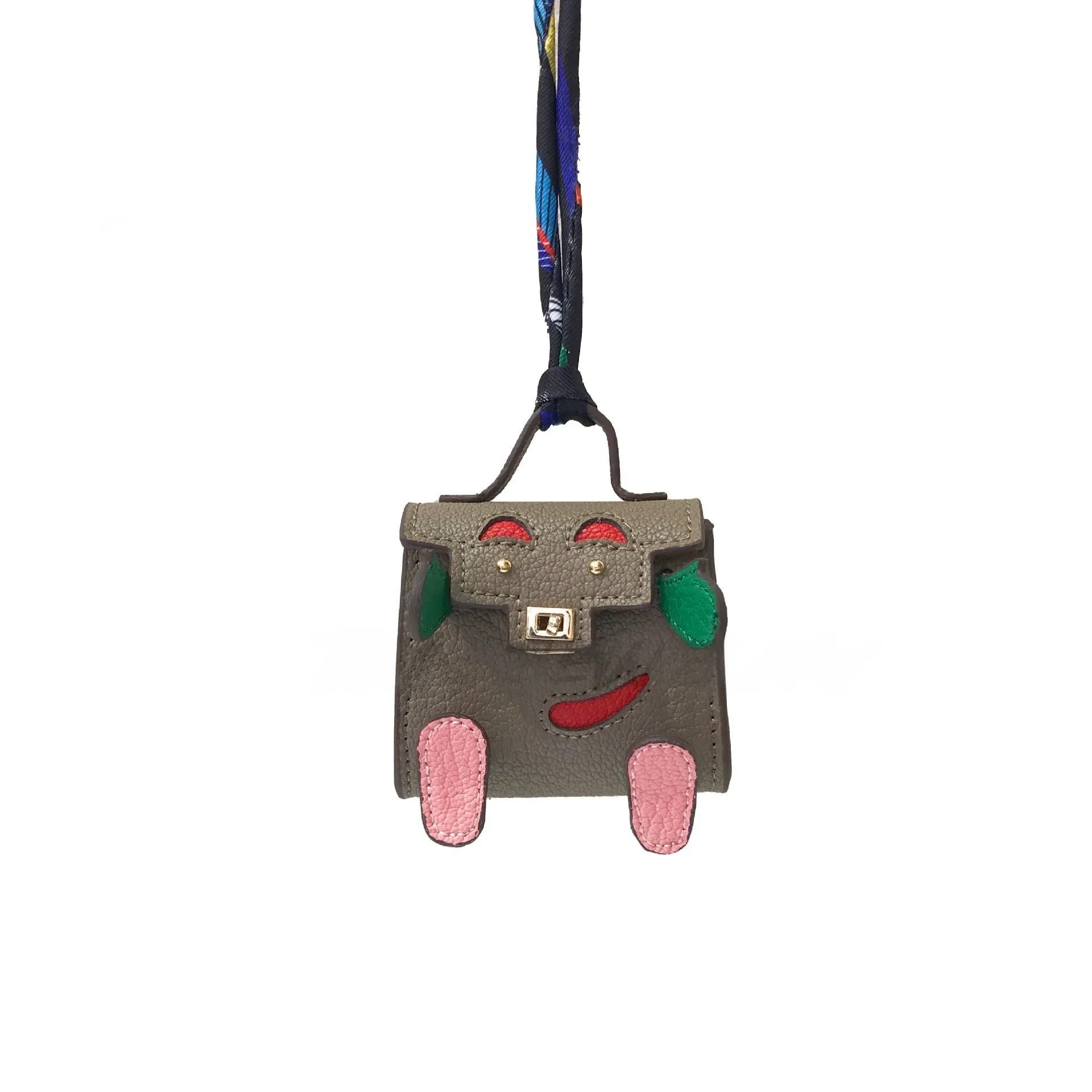Llavero, colgante para el bolso. Diseño en forma de mini bolso con solapas y cierre. Disponible en cinco colores: rosa, azul, marrón, gris y amarillo.