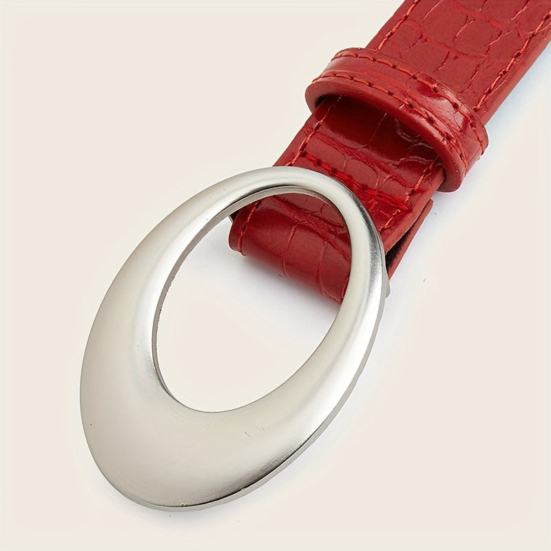 Cinturón de imitación cuero con hebilla ovalada en contraste. Tamaño aproximado de 105 cm.