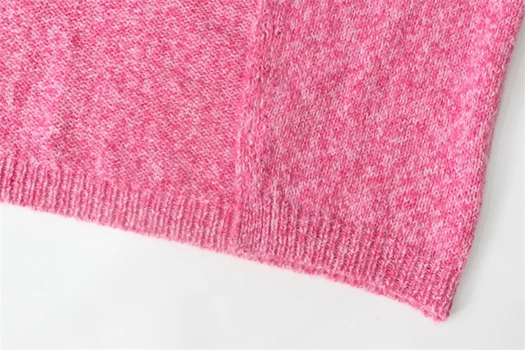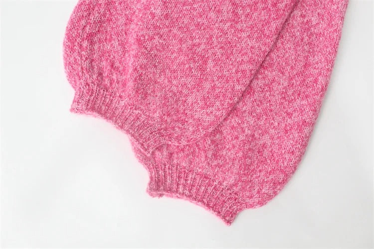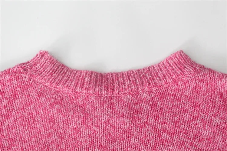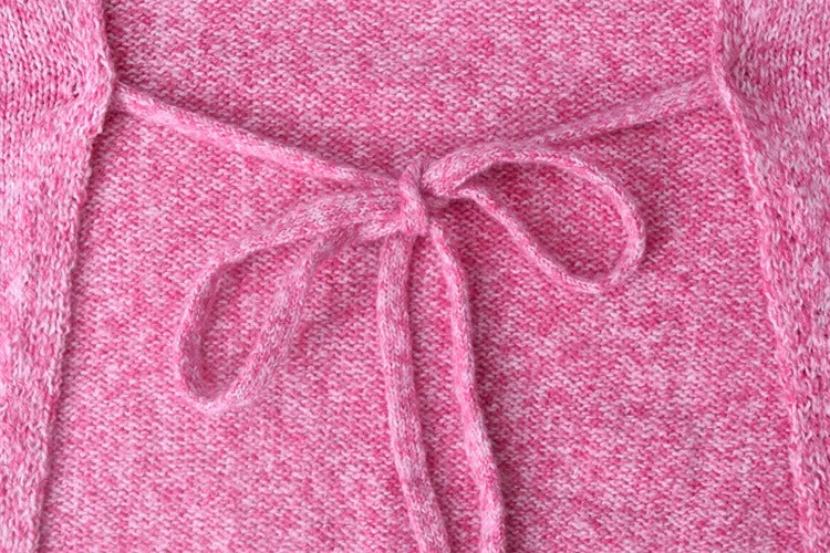 Diseño de largo medio y corte holgado. Cuello redondo con detalles de lazos en la parte trasera con espalda descubierta. Manga larga con acabado abombado y tejido suave en tono rosa.