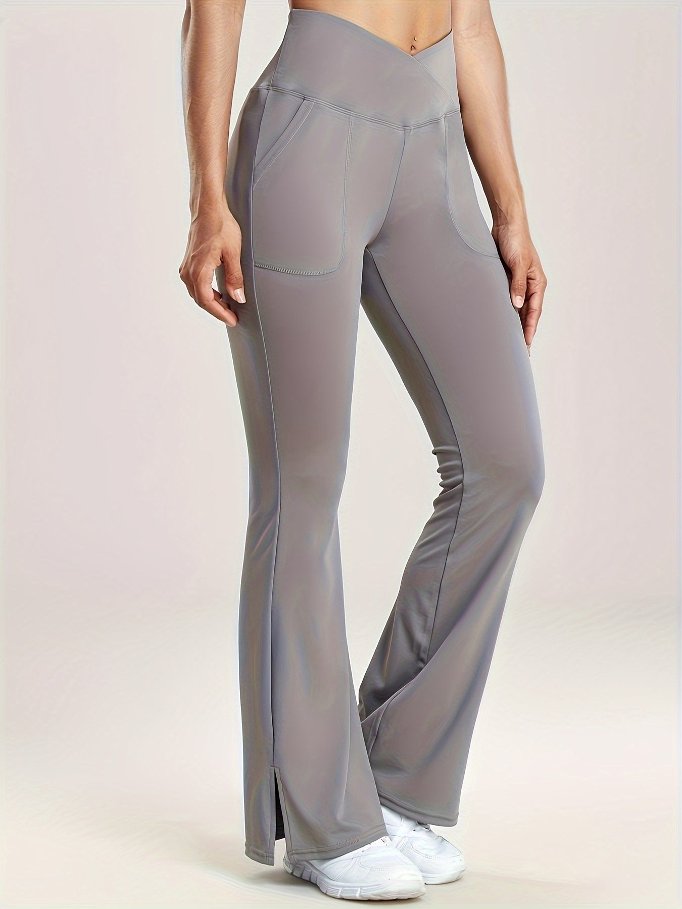 Legging largo con pierna acampanada. Bolsillo lateral. Apertura lateral en los bajos. Cintura elástica.