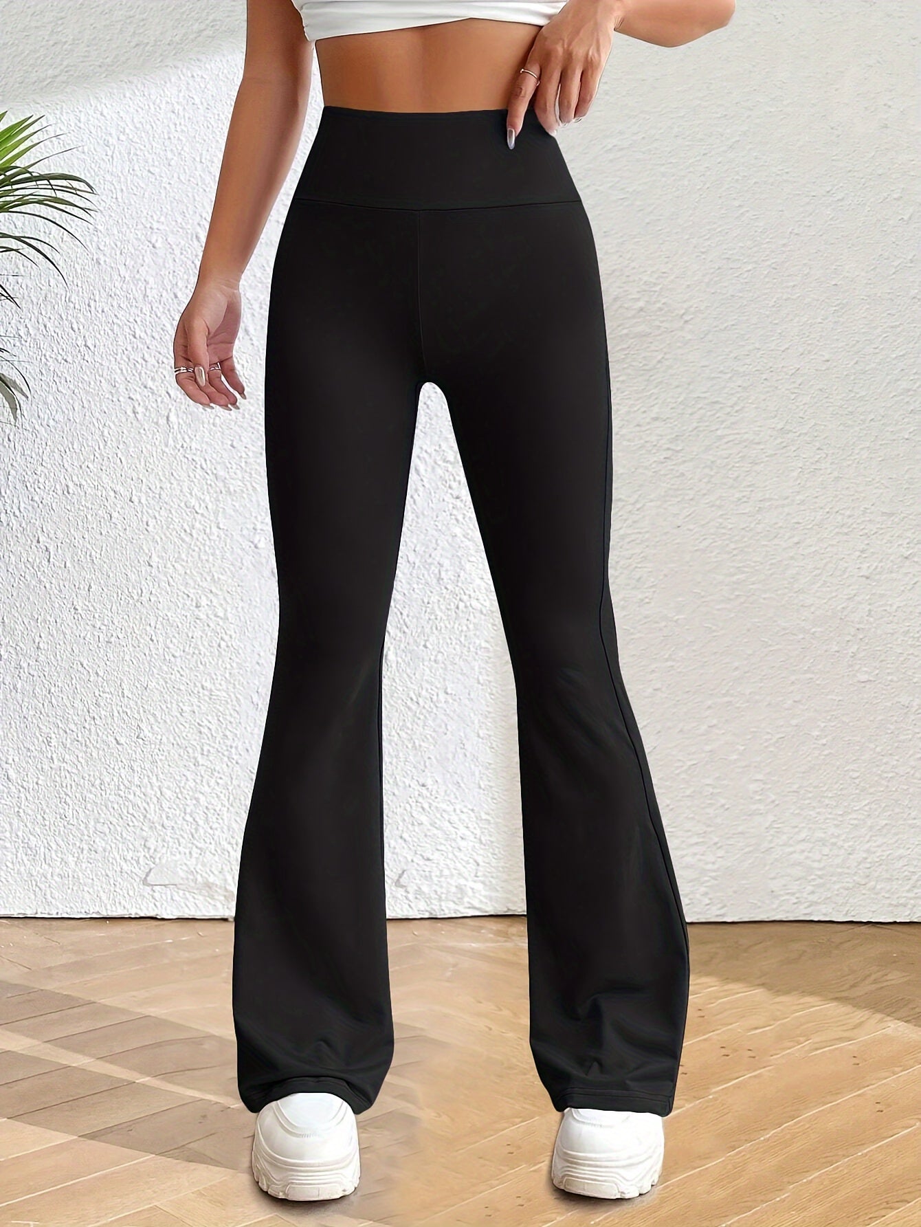 Legging largo entallado. Pierna acampanada. Cintura elástica recta.