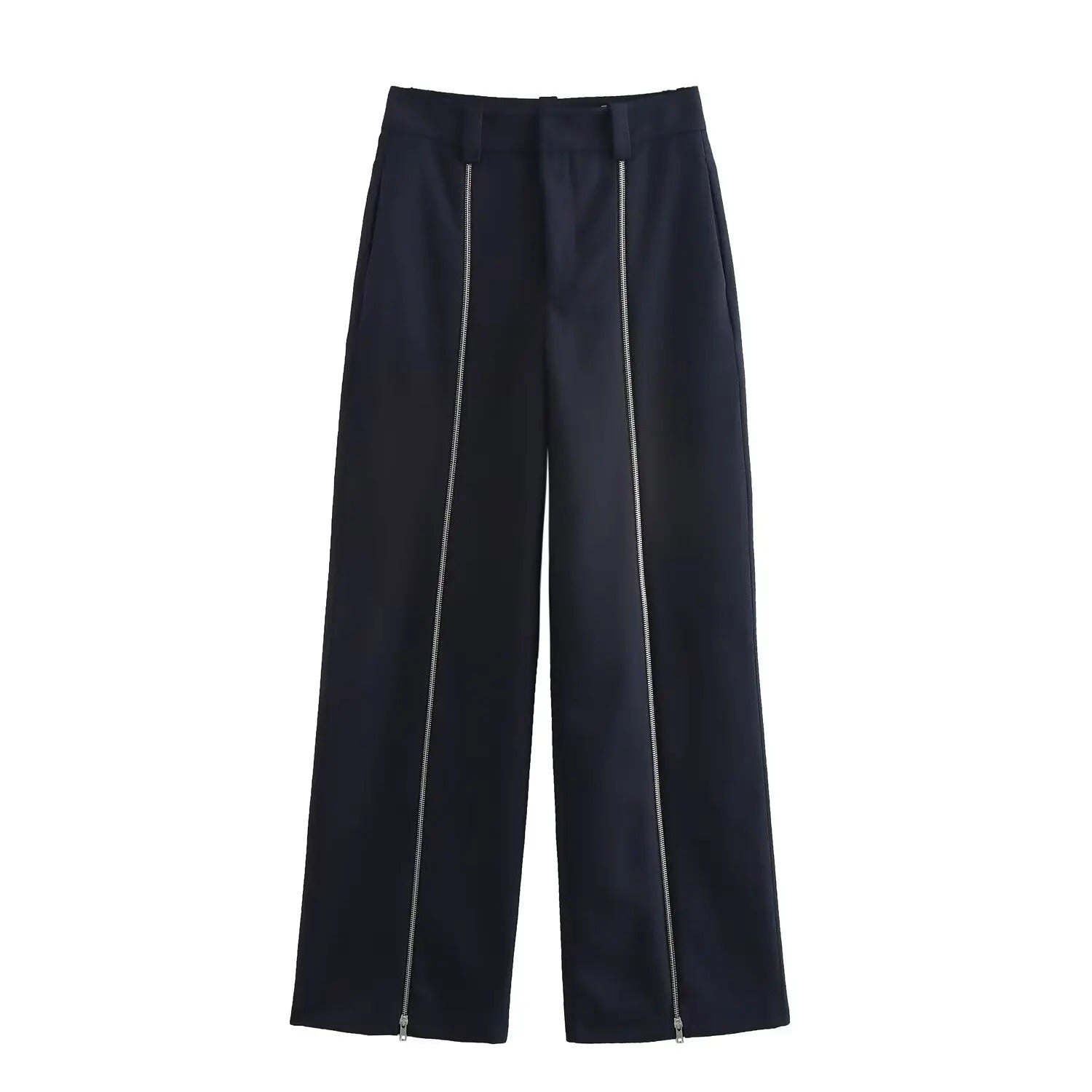 Pantalón largo con detalle de raya en color de contraste frontal. Bolsillos laterales. Ajuste a la cintura de talle alto.
