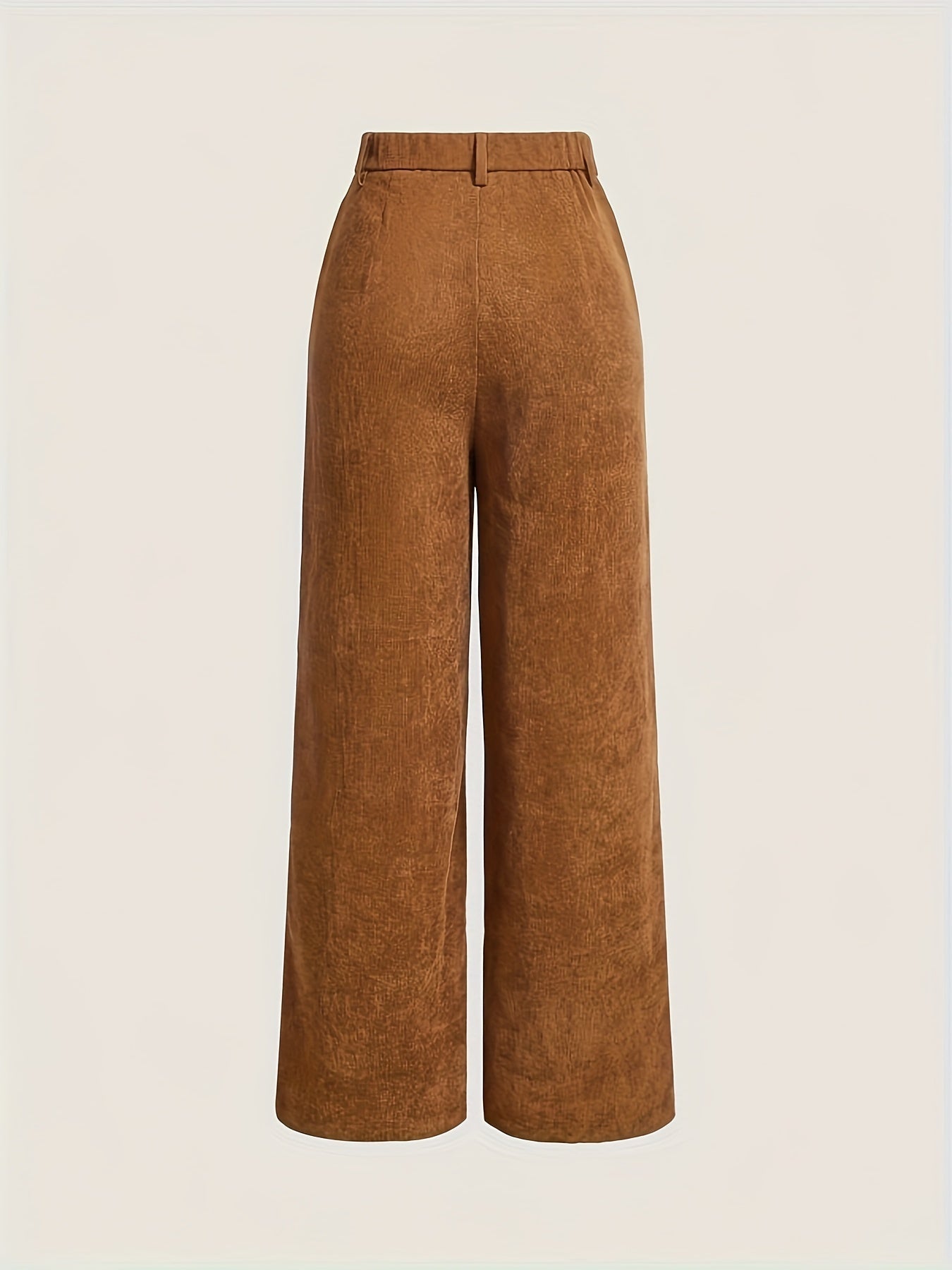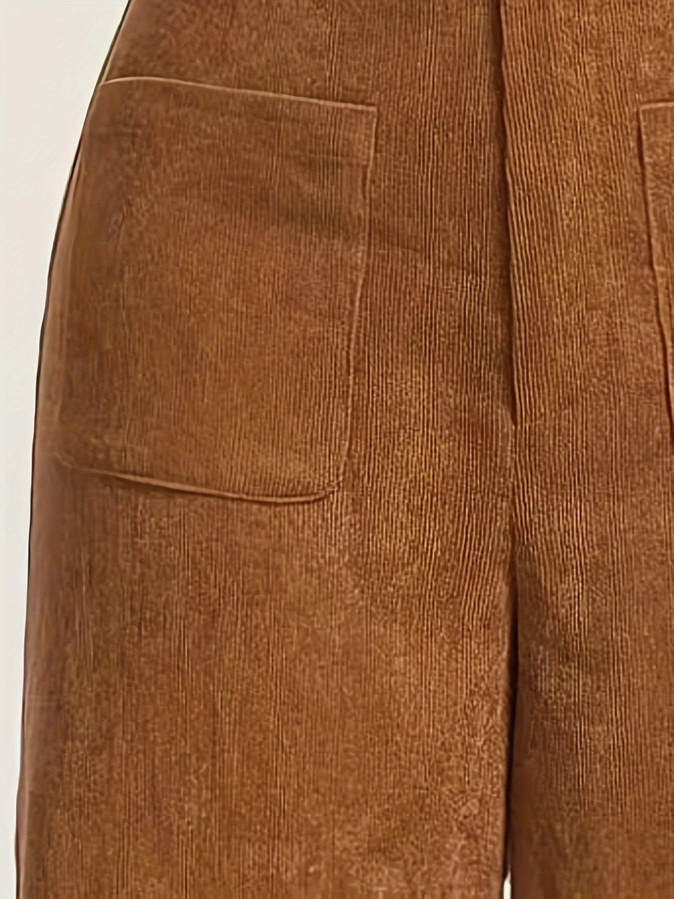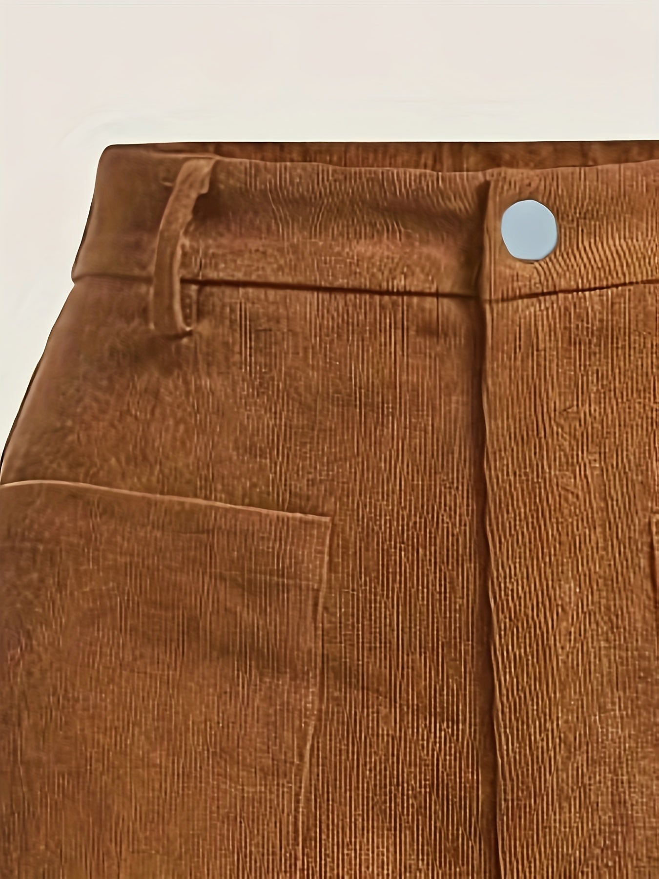 Diseño de corte recto. Tejido tipo pana. Tiro alto con detalle de bolsillo en la parte frontal. Cierre doble de botón y cremallera.