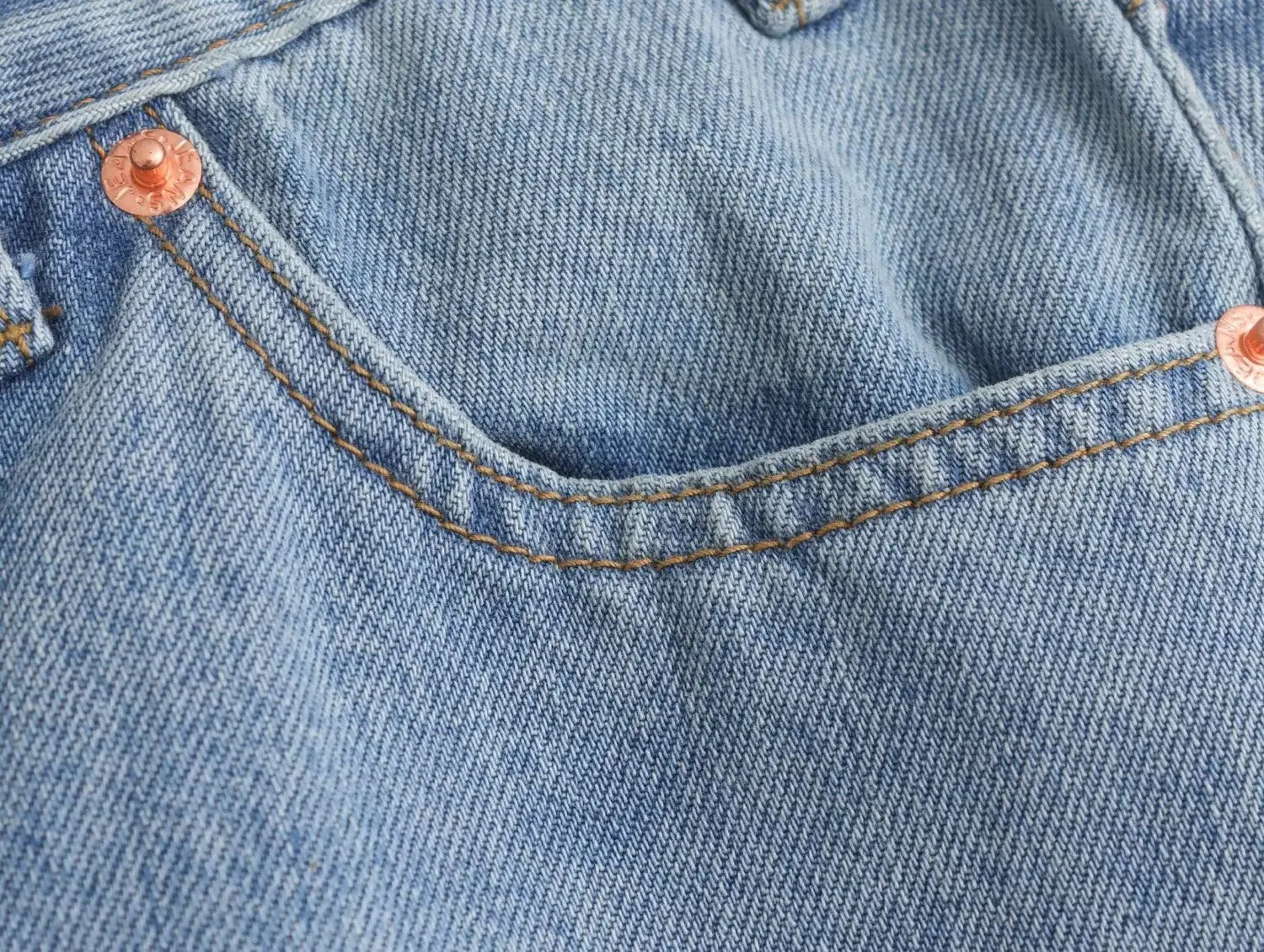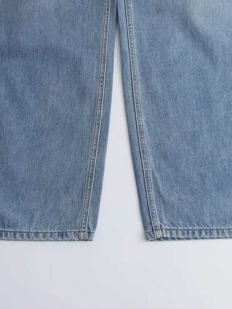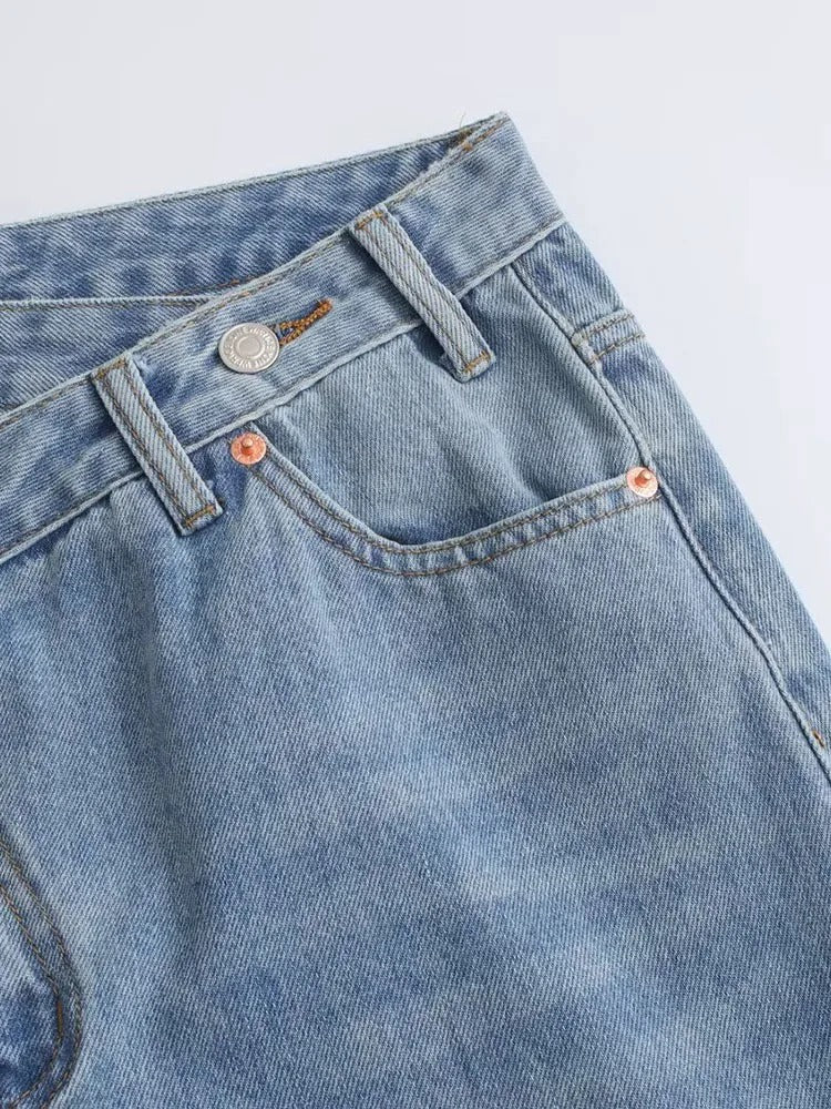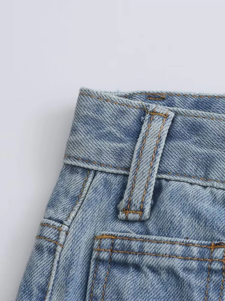 Diseño de pierna ancha, corte recto. Cierre frontal con botón y cremallera. Cintura asimétrica.