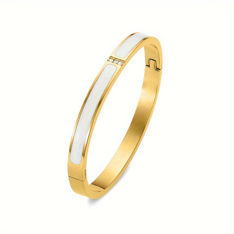 Pulsera rígida con cierre de encaje en tono dorado con color de contraste en perlado.