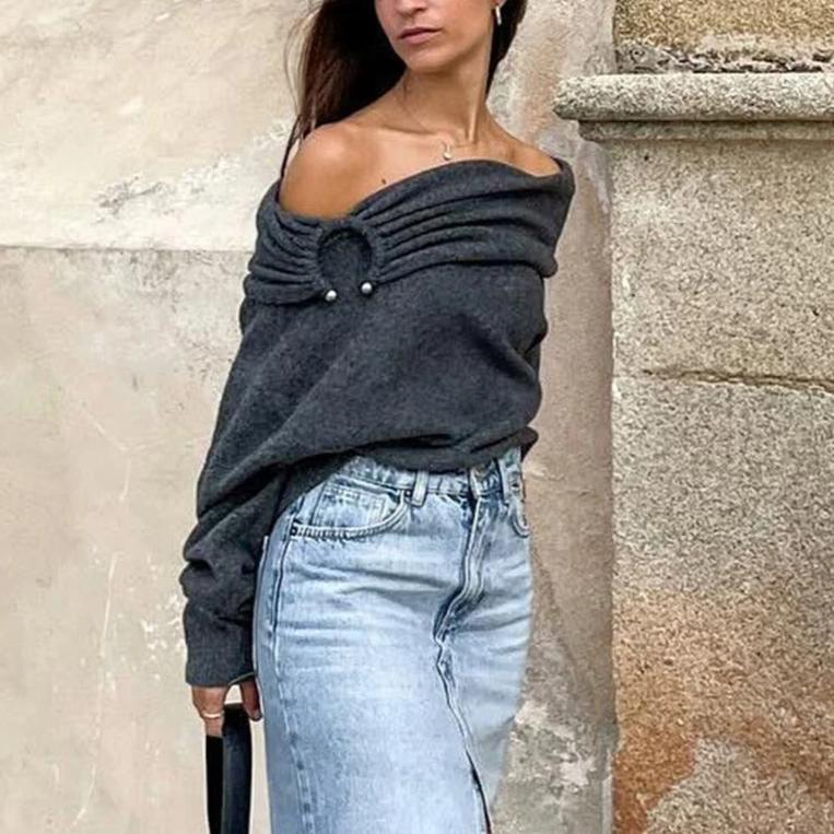 Suéter de Hombros Caídos con Detalle de Drapeado