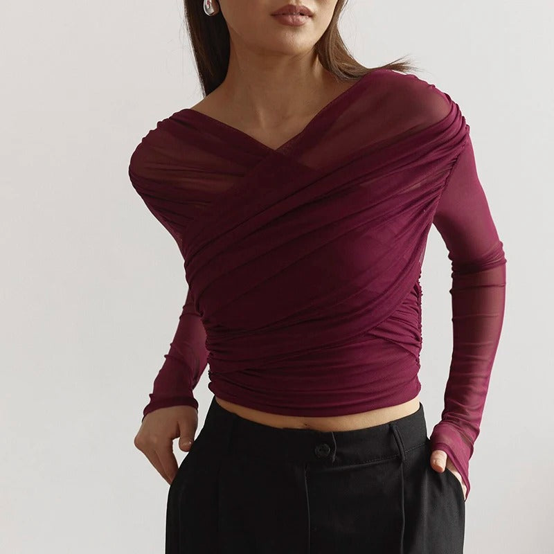 Top Transparente Cruzado de Manga Larga