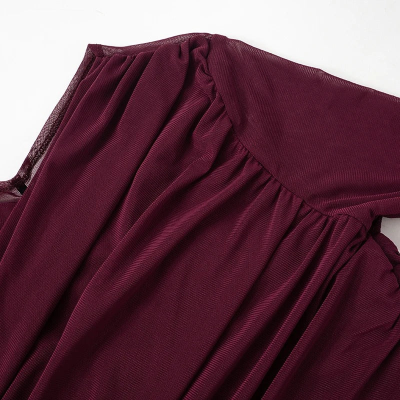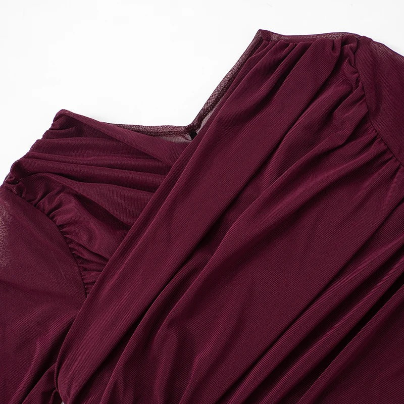 Top con transparencias y escote cruzado. Manga larga. Tejido de alta elasticidad. Transparencias fruncidas en la espalda.