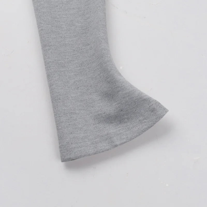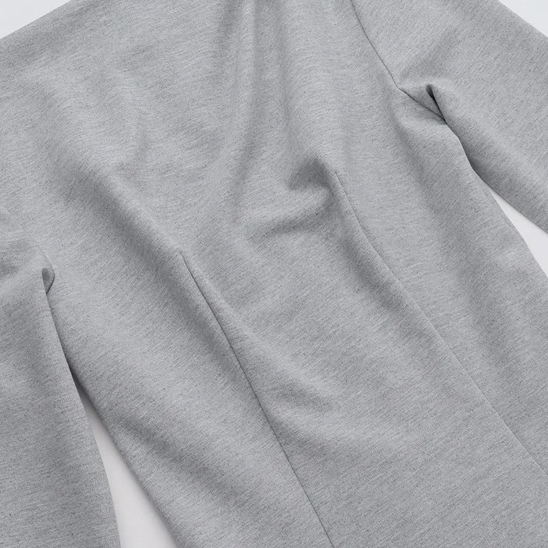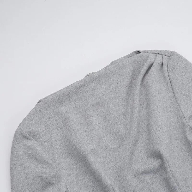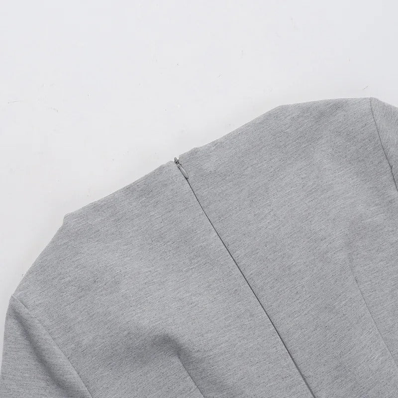 Vestido Corto Gris con Manga Larga y Corte Acampanado