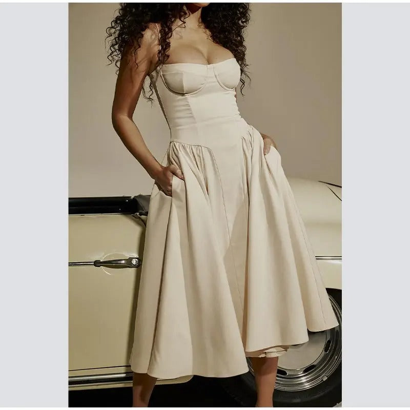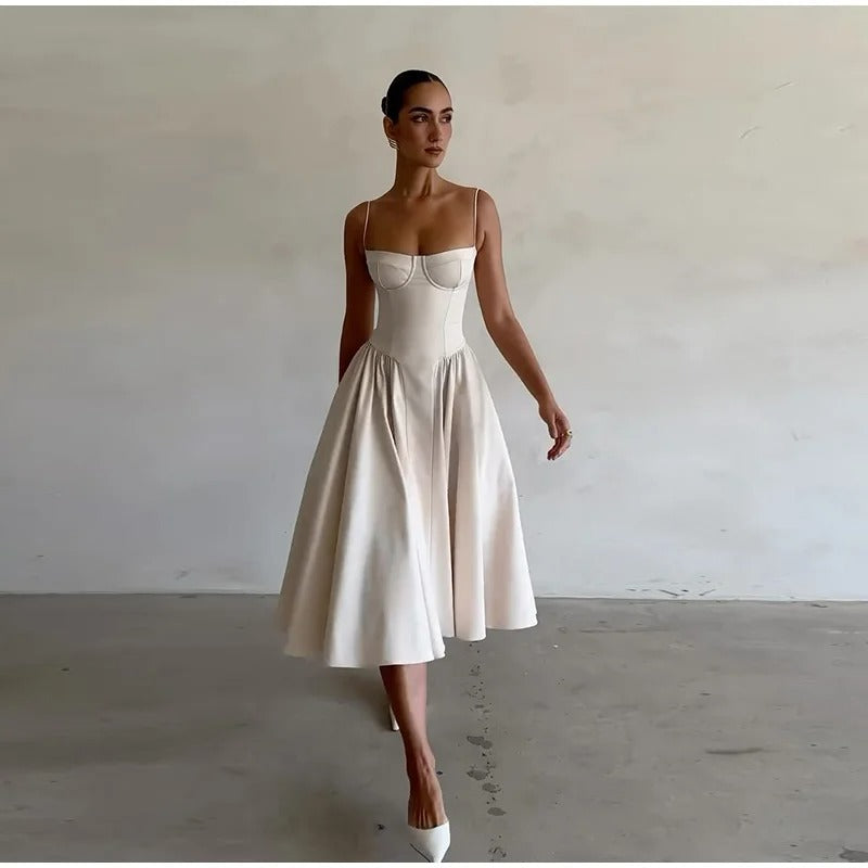 Vestido Midi Encorsetado con Vuelo
