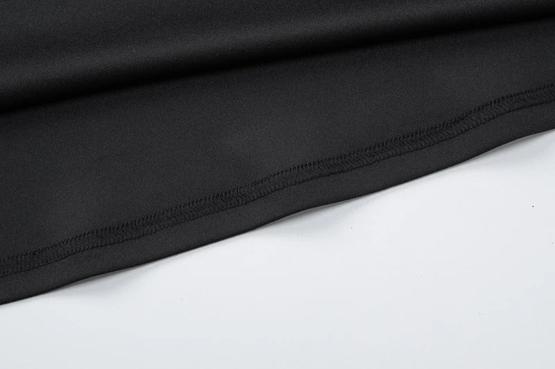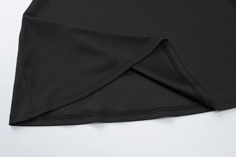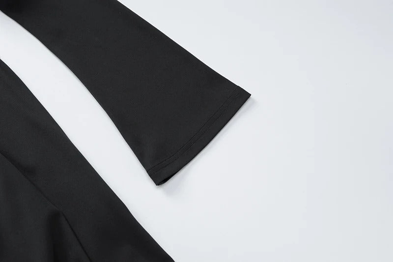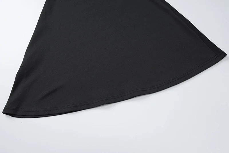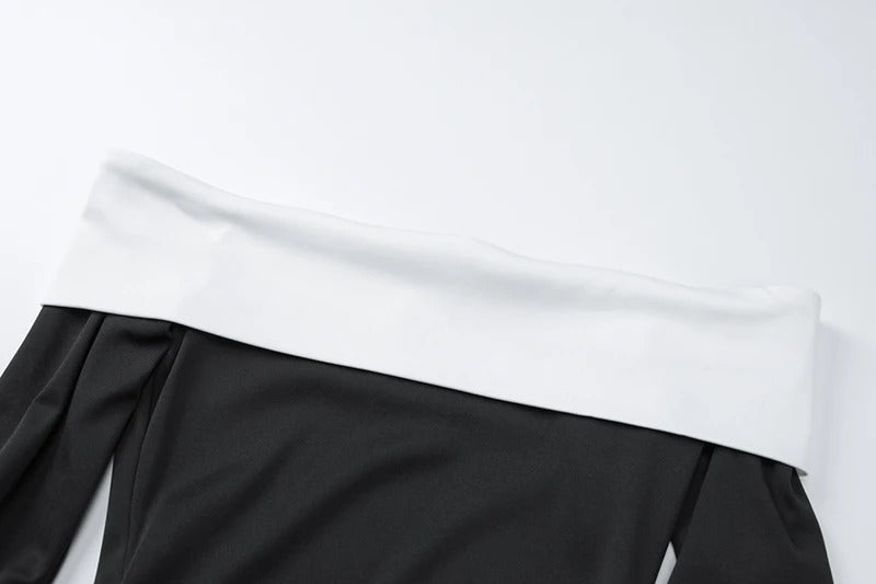 Manga larga. Falda holgada. Escote de barco con hombros descubiertos con color en contraste.