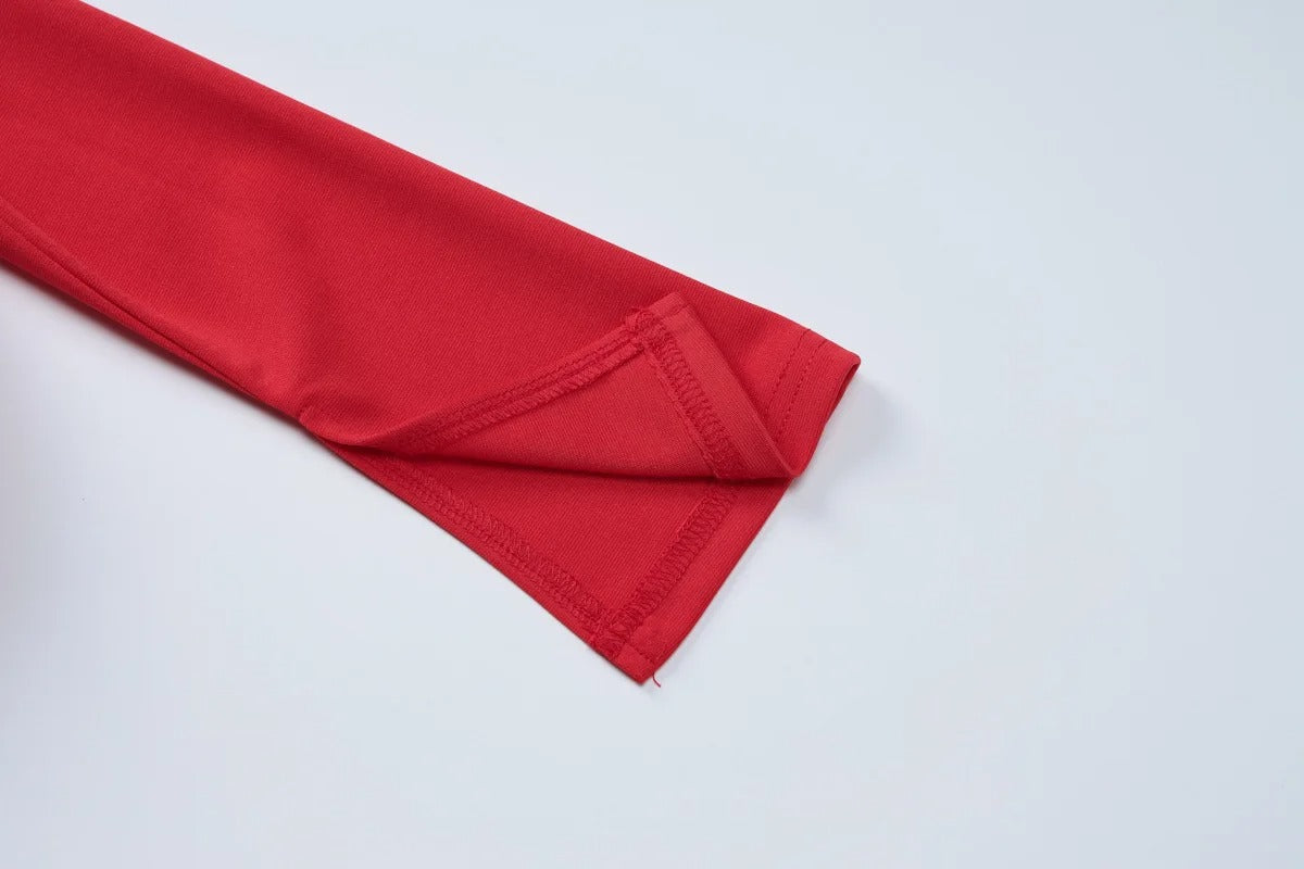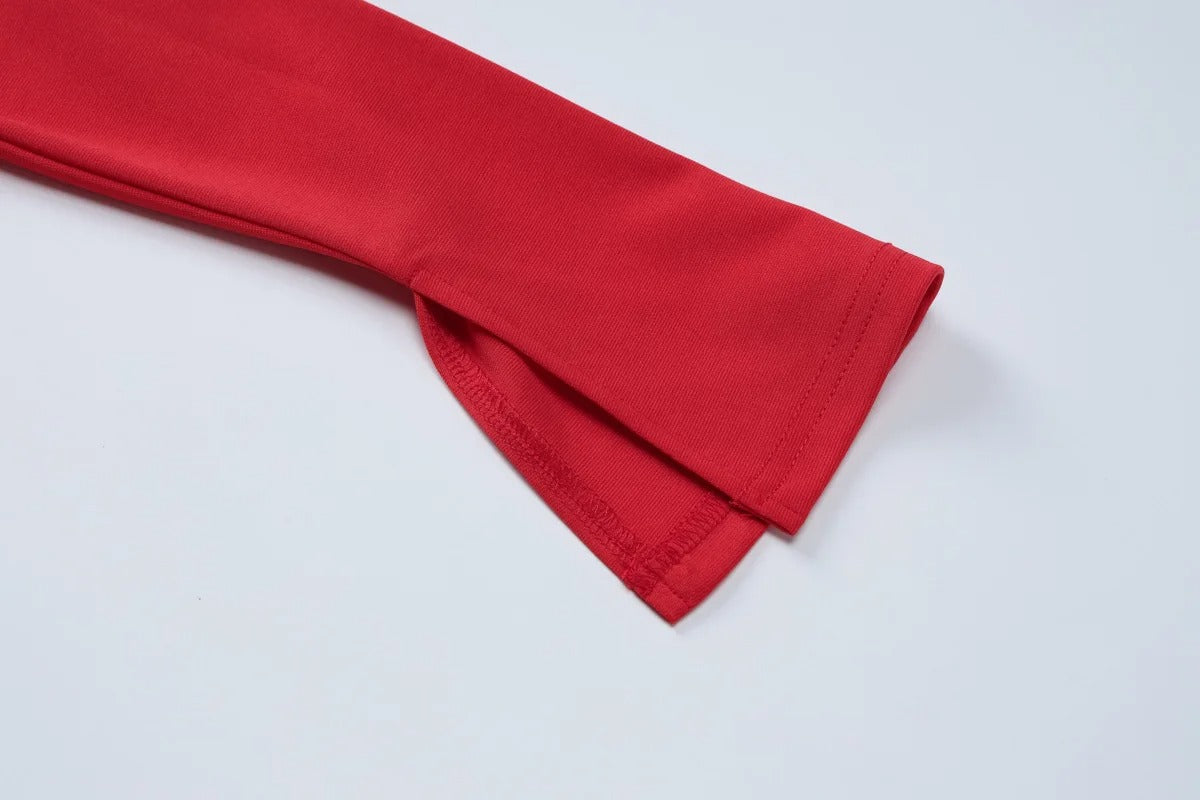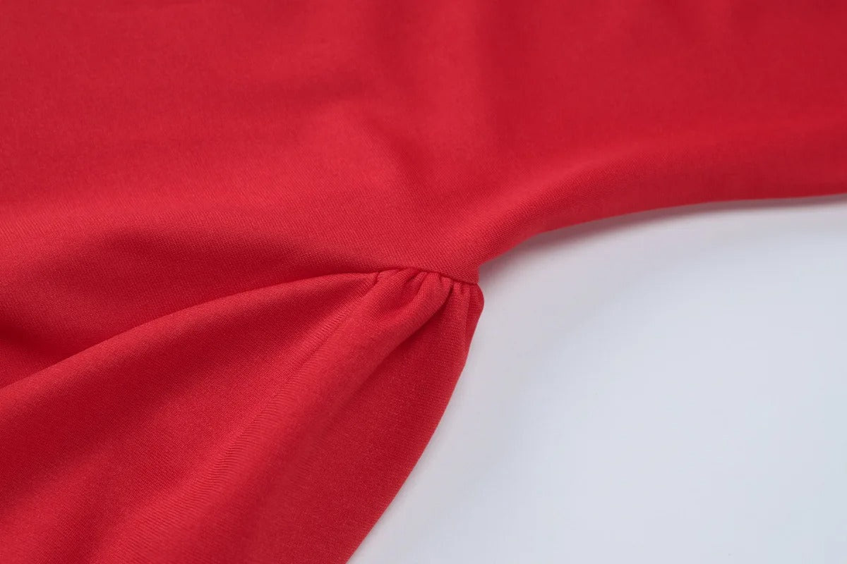 Vestido con escote cuadrado. Manga larga, Detalle de lazo en el pecho. Falda acampanada con laterales drapeados. Alta elasticidad.