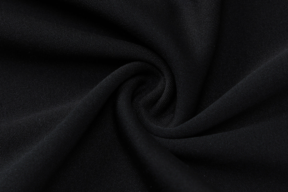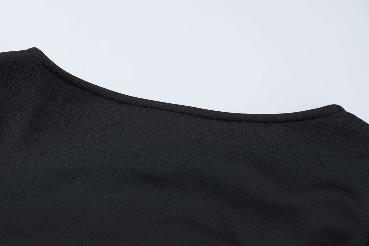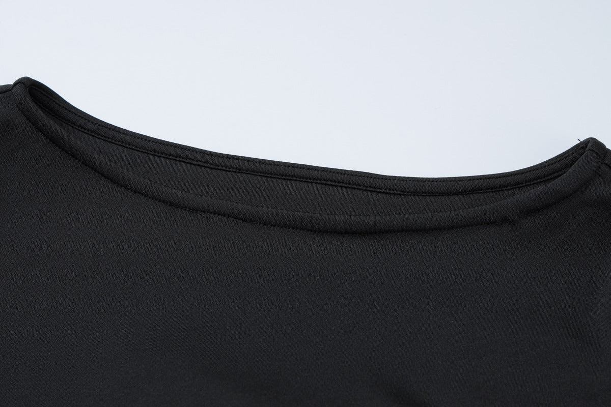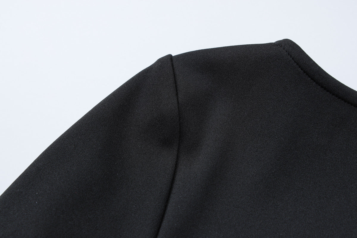 Diseño mini. Cuello redondo. Manga larga. Detalle de volantes rizados en blanco en mangas parte inferior.
